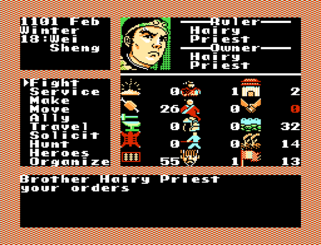Where to even start with this game. It’s a turn based strategy game in which you “control” a person to try to create a fiefdom. This is one of those games which would GREATLY benefit from the instruction booklet or a strategy guide. From the very beginning I was lost.