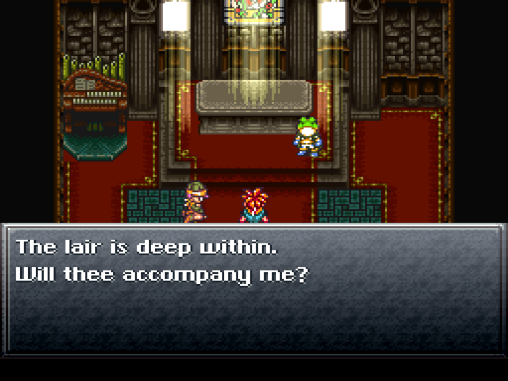 I’m back in my home time!  I started the game, met Marle, had a nice little date with her then we got sent back in time where I was deemed a terrorist.  I had to rescue the princess to show I wasn’t a bad guy and defeated the monster pretending to be a royal chancellor which allowed me to go home.  Marle and I went back to her castle only for them to throw me in prison based on the actions of my character and saying I kidnapped the princess!  LIES!  I may be in my home time but I’m stuck in prison.