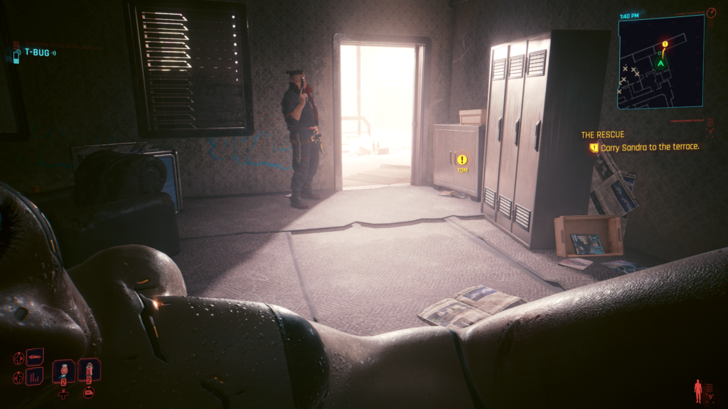 The game can look very pretty when everything is clicking and the people aren’t getting in the way. There are some occasional jarring moments which took me out of the world but they were few and far between. Like I said, everything has a lived in look which means there is trash and grime everywhere but that’s the mood. The character models look ok as long as you don’t look too closely. Personally, I thought Johnny Silverhand looked rough considering he’s supposed to be front and center.