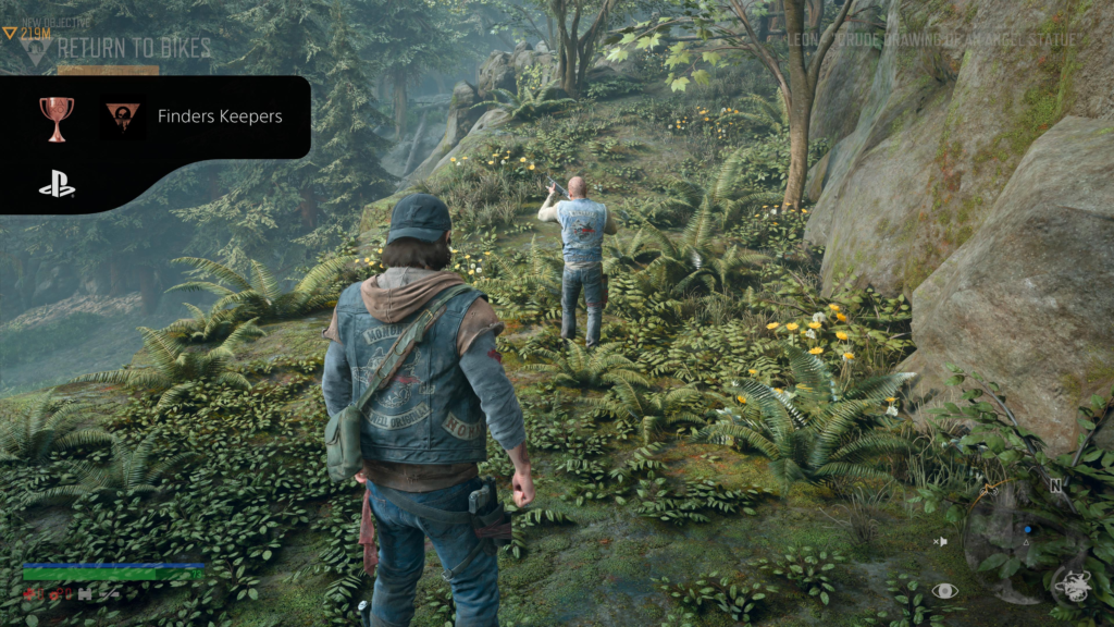 You’re a drifter in a post apocalyptic zombie infested part of the Northwest United States. Even though all this shit is going on, you still have the ability to find gasoline aplenty for you and your friend’s motorcycles as well as a readily supply of ammunition and medicine for all your needs. Mind you this is two years after the outbreak. As you go through the world, collecting, hunting, etc., I think you’re searching for your wife, but that’s not important as you’re just cruising the land looking for loot. Zombies and weirdos will attack you in literal waves but luckily you are never wanting for materials or weapons to take them on.