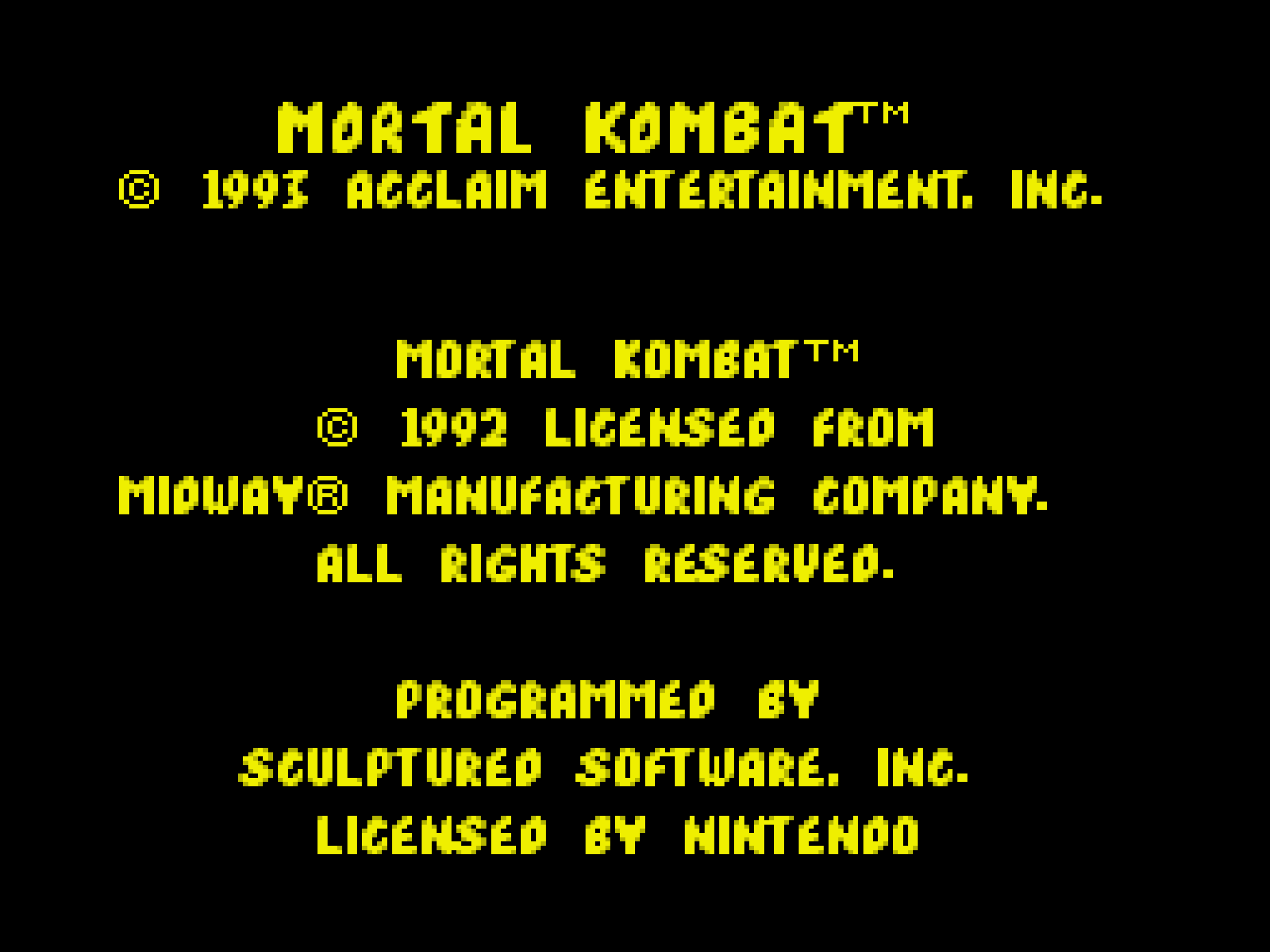 Mortal Kombat for the SNES is a port of the hit fighting game that was released in the arcade prior.  Its style is based on Chinese martial arts movies and, particularly, Big Trouble in Little China.  You can be one of seven fighters in your hopes to face the sorcerer Shang Tsung to hopefully become victor of Mortal Kombat.  This game was a huge deal when it was released because of the violence it had, the snappy fighting, and fatalities you did at the end of a match.  Luckily, none of these things transferred over to the Super Nintendo port and we were left with trash.  Although the game played like shit, it was all we had since the SNES was our platform of choice.  Not having the fatalities or blood, thanks Nintendo, was what we had to deal with.