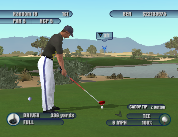 I have mixed feelings about this one.  This was the time when Electronic Arts was putting EA Trax in everything so you get a hodgepodge of random rap rock from that time period which really doesn’t fit so, long ago, I turned it off.  Only to replace it with my GOOD rap rock of that time period.  Very hypocritical.  The rest of the sounds are really well.  I love the crowd noises they make as well as the ambient sounds of the courses.  The commentary is alright and repetitive but you’ll start blocking it out after a while.