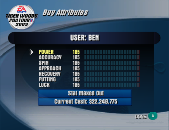 You wouldn’t think you could complete a sports game but I feel I’ve done it.  My created character is maxed out and has millions in the bank because he can’t buy anymore.  I’ve hit holes in one, eagles, etc. so I really don’t have any worlds to conquer.  Yet, I keep coming back to this game for a quick 18 because it is so good.  My friends and I used to play this all the time back in college so there is that nostalgia but I feel this is just a really good golf game.