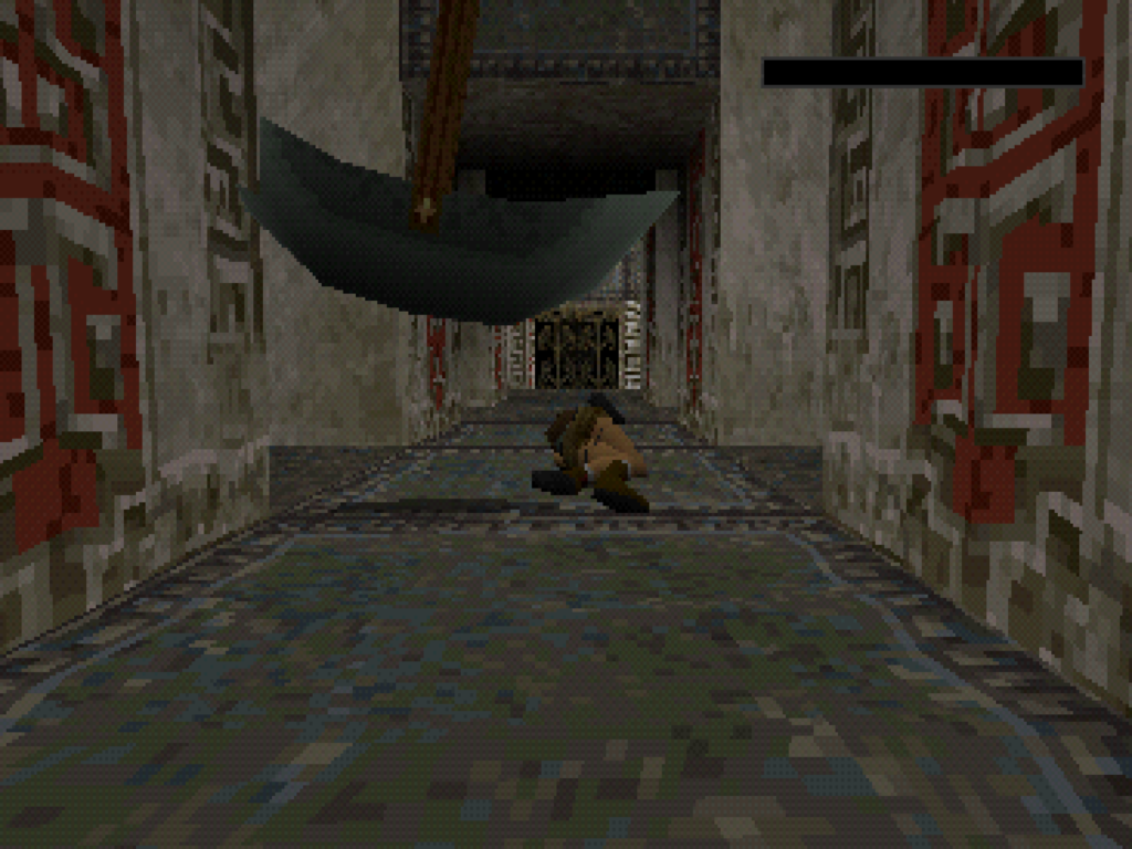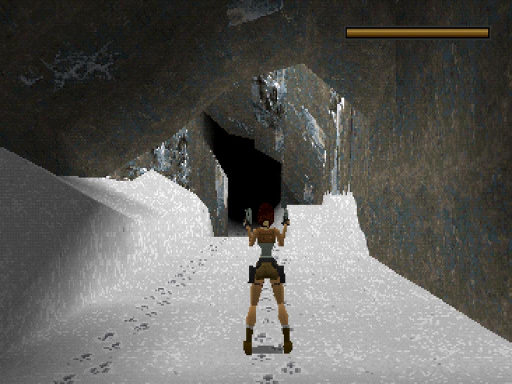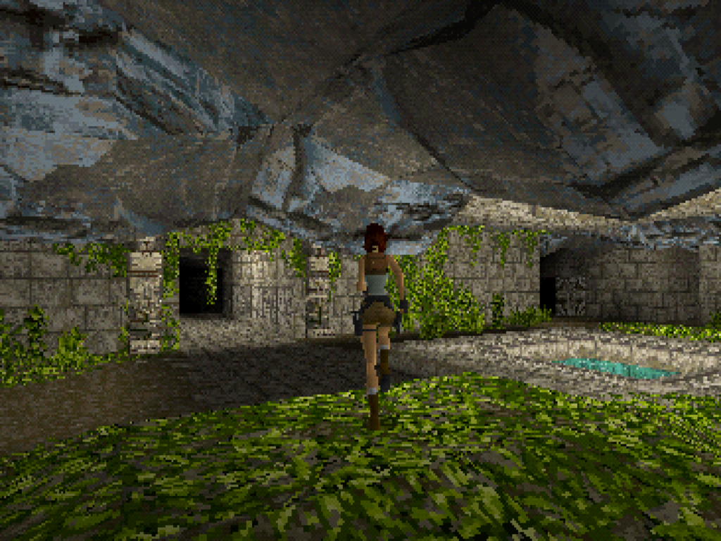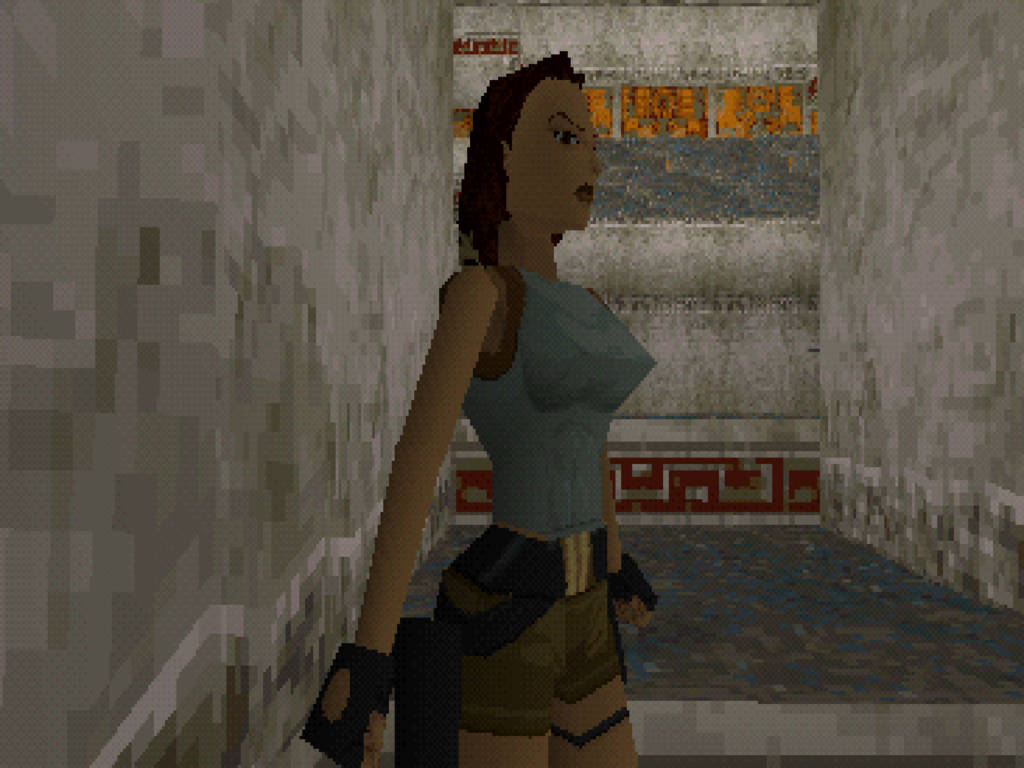 Tomb Raider encompasses the look of what you think of when you hear someone say “PlayStation 1 graphics.” Everything has a hard chunky look to them. The textures are super pixelated and they wobble all over the place. Lara herself really has no detail. But it all works. I love the way this game looks. I loved the way it looked even when it first came out. Even though I said that mess about the textures, the sharpness of them makes the world look super clean and my mind fills in the rest of the details. The worlds are also nice looking even with their shortcomings. I could talk about the rudimentary CGI that was prevalent at this time period for CD based consoles, but that’s irrelevant.